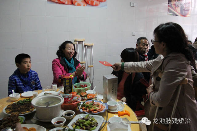 2015年2月18日(羊年除夕),医院为他们精心准备了丰盛的年夜饭,还考虑到北方人过年要吃饺子的习俗,采购了肉馅、面粉等,工作人员和患者一起包了爱心饺子。龙池医院郝院长致新年献词,祝大家早日康复,新年快乐,阖家幸福!
